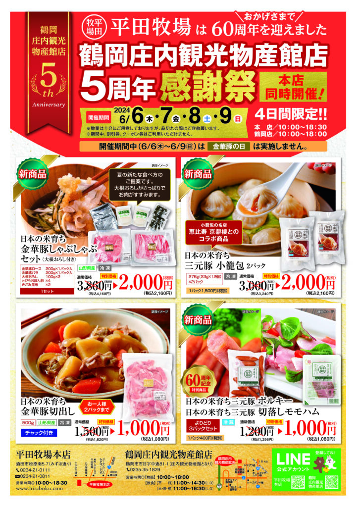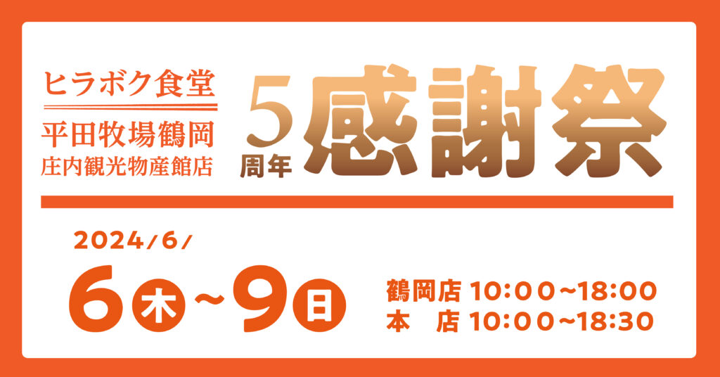 【ヒラボク食堂 / 鶴岡庄内観光物産館店】5周年感謝祭開催のお知らせ(本店同時開催)