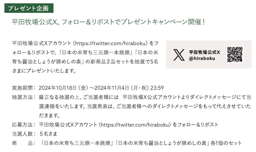 株式会社平田牧場(山形県酒田市/代表取締役 新田嘉七)は、2024年10月24日(木)より、平田牧場三元豚を使用した「日本の米育ち三元豚 一本焼豚」「日本の米育ち三元豚 醤油としょうが 豚めしの素」を全国の直営物販店、及び直営オンラインショップ新発売します。