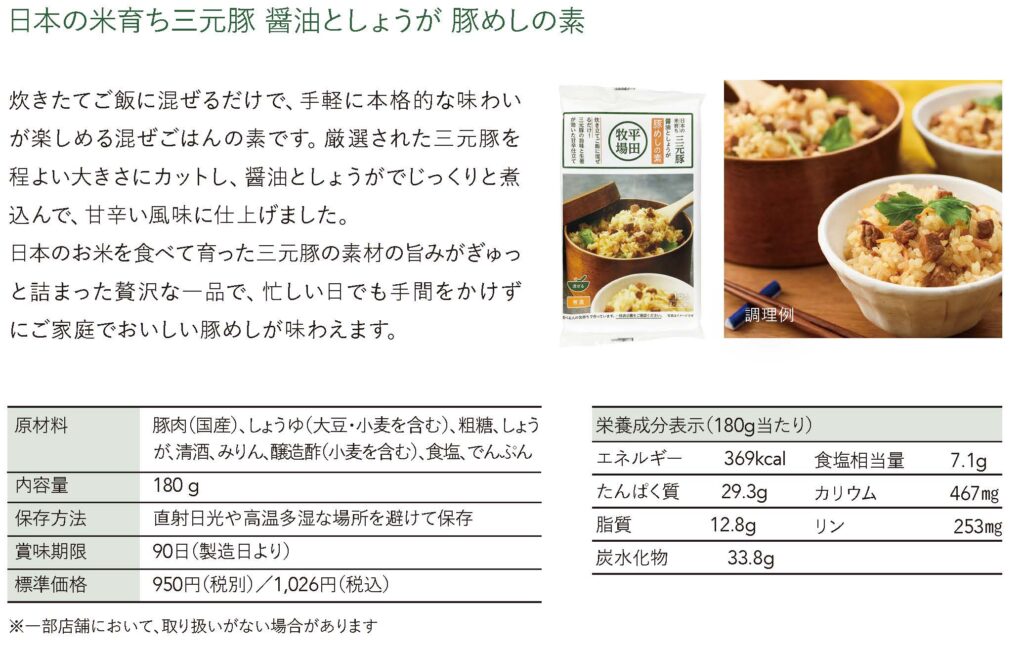 「日本の米育ち三元豚 一本焼豚(チャーシュー)」「日本の米育ち三元豚 醤油としょうが 豚めしの素」は、ミートボールでお馴染みの石井食品株式会社(千葉県船橋市/代表取締役社長執行役員 石井智康)とのコラボ企画第2弾です。当社で生産する三元豚の素材にこだわり、食品添加物を使用せず、原材料をシンプルにすることでおいしさを追求しました。