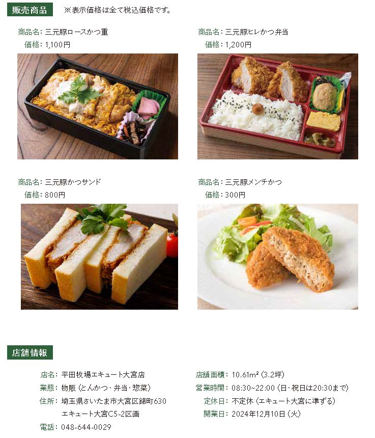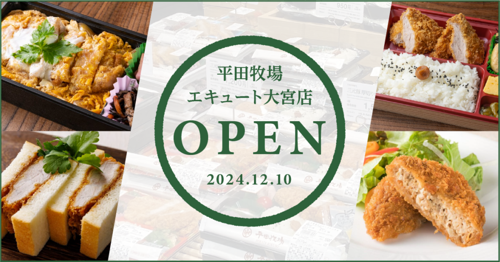 株式会社平田牧場(山形県酒田市/代表取締役 新田嘉七)は、2024年12月10日(火)にJR東日本クロスステーション(東京都渋谷区/代表取締役社長 西野史尚)が管理・運営する商業施設「エキュート大宮」に「平田牧場エキュート大宮店」をオープンします。