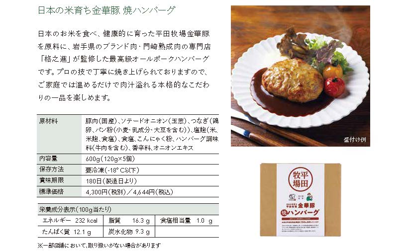 平田牧場、金華豚生ハンバーグ、焼ハンバーグを新発売!