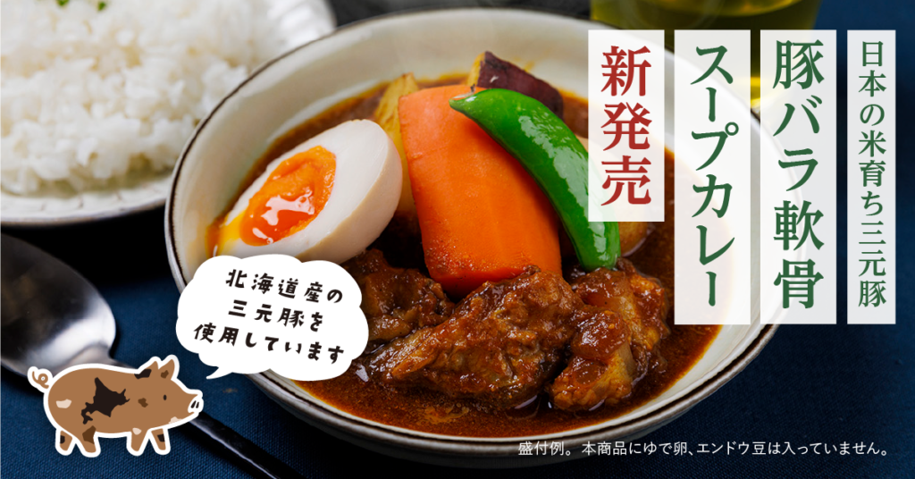 豊かな大地で育まれた北海道産の野菜と、同じく北海道で育った平田牧場「日本の米育ち三元豚」の希少な豚バラ軟骨を贅沢に使用した、本格スープカレーが新登場しました。素材の旨味が溶け込んだ、スパイス香る奥深い味わいを、ご家庭で手軽にお楽しみいただけます。
