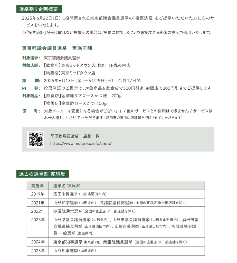 【東京都議会議員選挙】 平田牧場、選挙に行って、とんかつ割引!