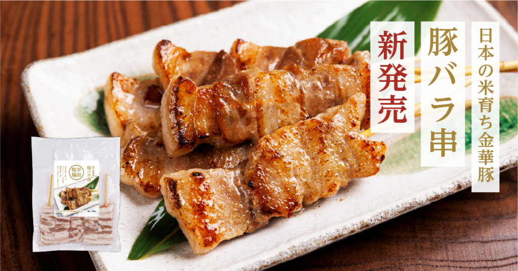 平田牧場、日本の米育ち金華豚 豚バラ串 販売開始