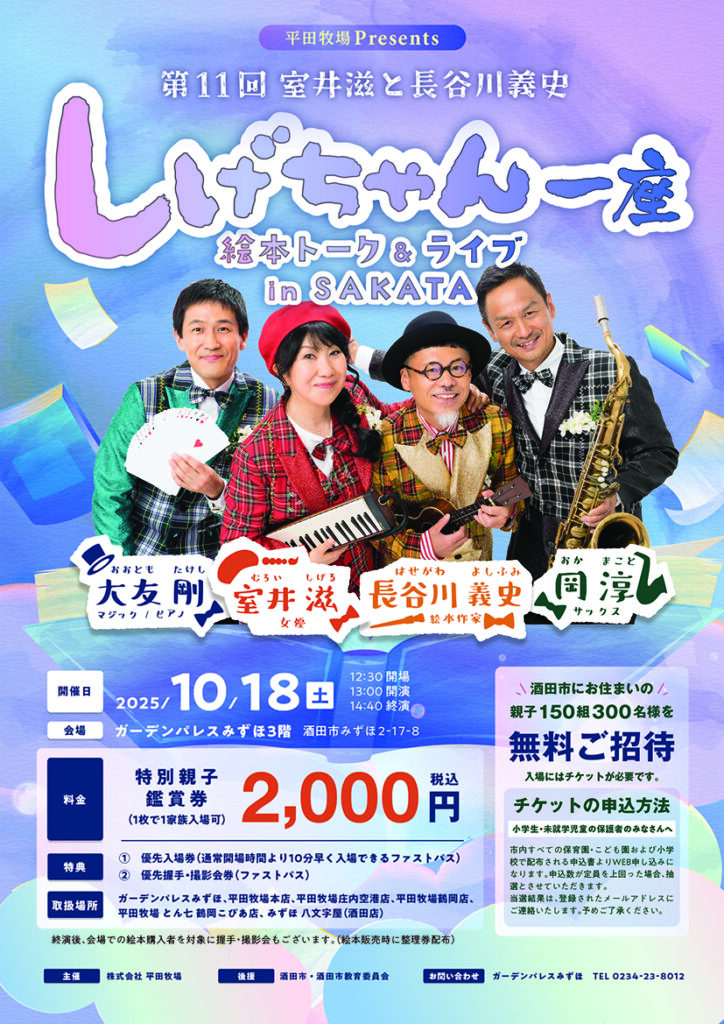 平田牧場 Presents 第11回「しげちゃん一座 絵本トーク&ライブ in SAKATA」が開催されます!