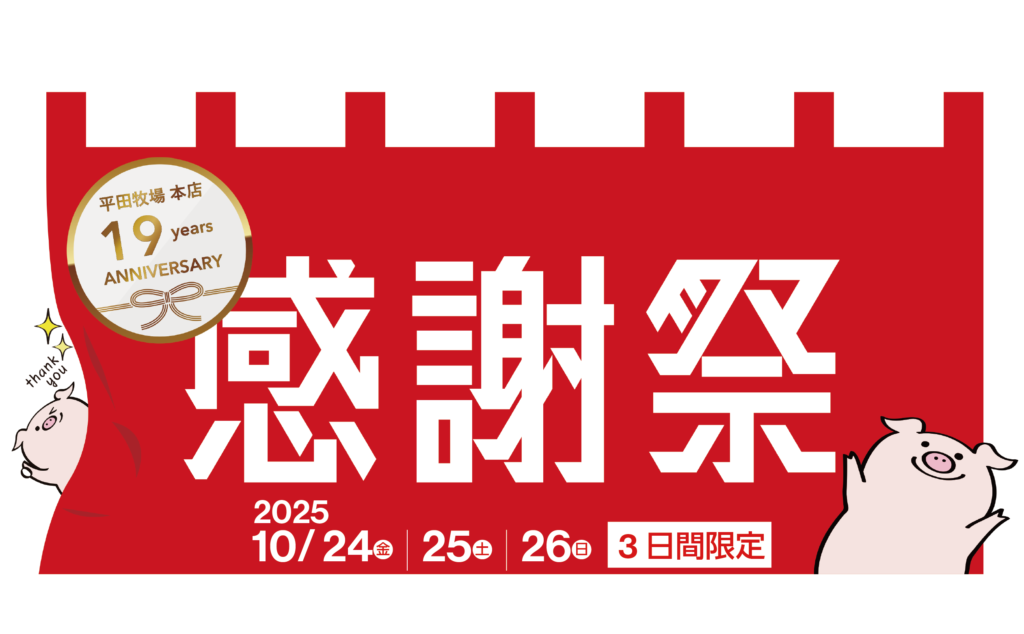平田牧場では、日頃の感謝を込めまして10月24日(金)25日(土)26日(日)の3日間限定で、平田牧場商品を特別価格でご提供いたします。