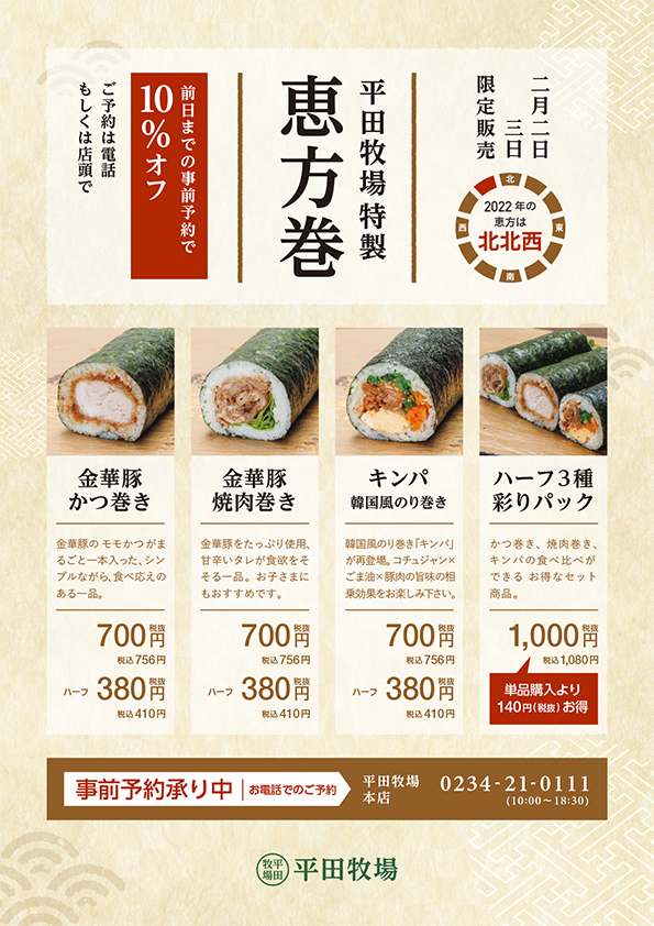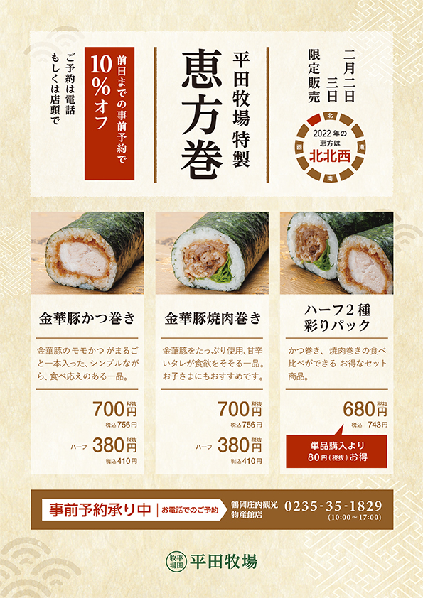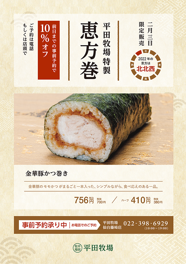 特製恵方巻 ご予約承り中【平田牧場 東北直営店】