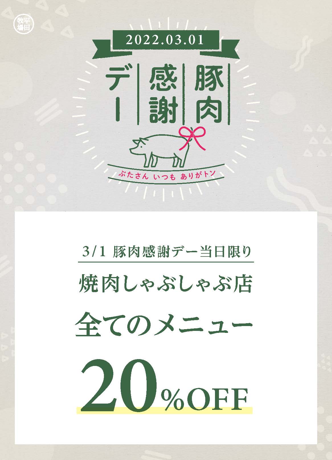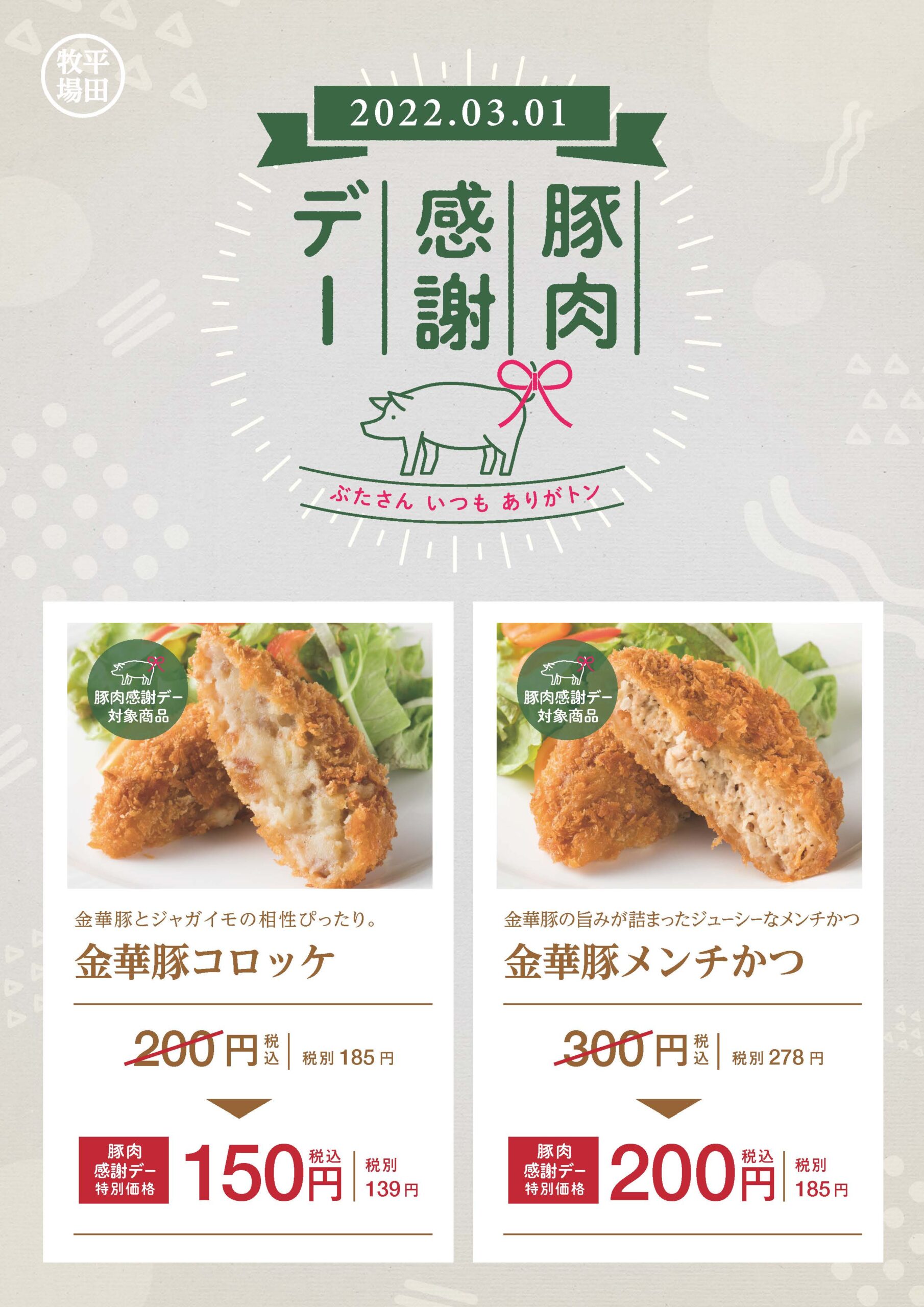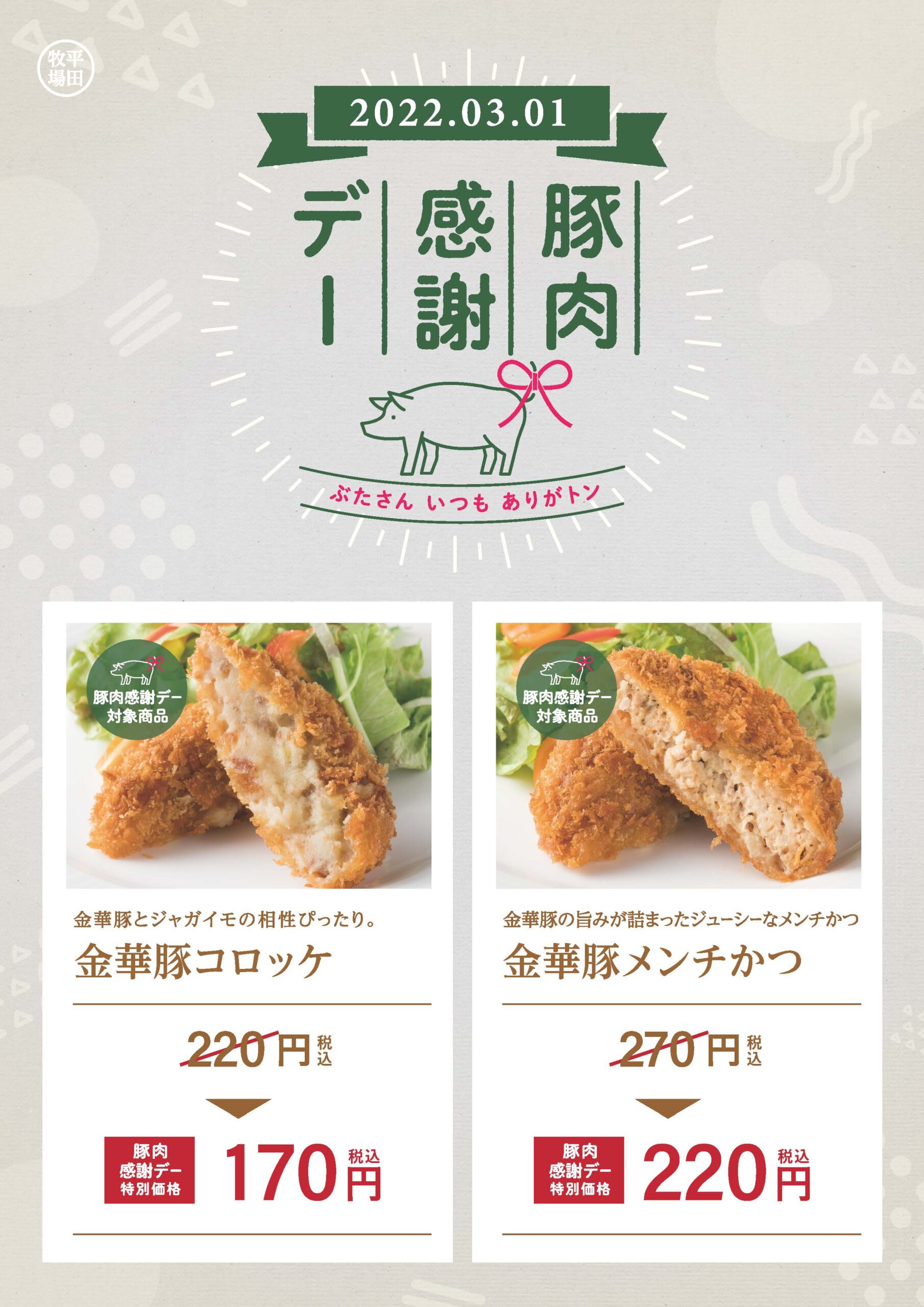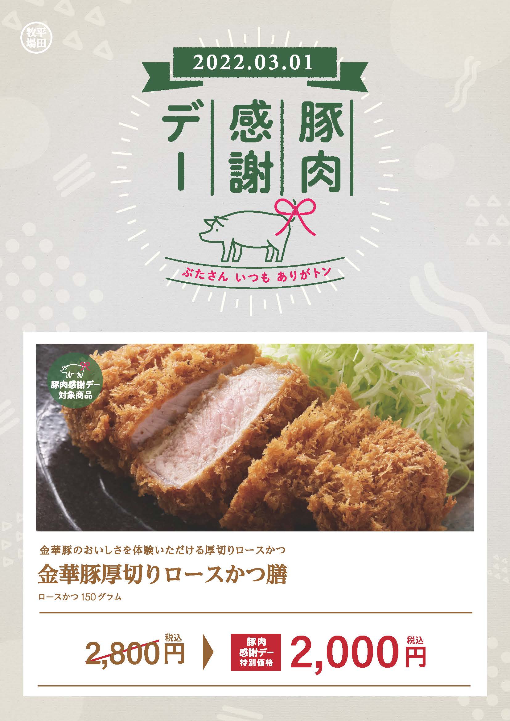 【直営店】3月1日豚肉感謝デー開催!