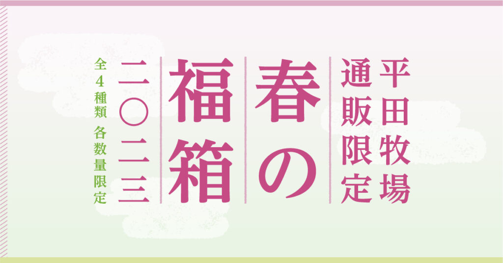 株式会社平田牧場(山形県酒田市/代表取締役 新田嘉七)の運営する、公式オンラインショップ(通販店)にて、春の新生活をテーマにした4種の「春の福箱(福袋)」を数量限定で2023年4月1日より販売開始しました。